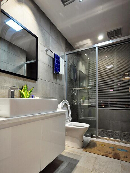 衛(wèi)生間做了玻璃隔斷 ,門口的防滑墊也很貼心。