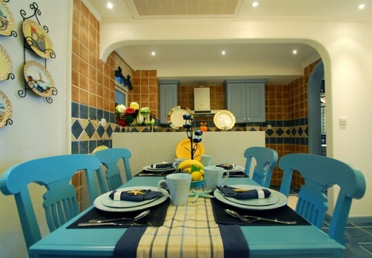 “地中海風格”對中國城市家居的最大魅力,恐怕來自其純美的色彩組合。西班牙蔚藍色的海岸與白色沙灘,希臘的白色村莊在碧海藍天下簡直是制造夢幻,南意大利的向日葵花田流淌在陽光下的金黃、法國南部薰衣草飄來的藍紫色香氣、北非特有沙漠及巖石等自然景觀的紅褐、土黃的濃厚色彩組合。地中海的色彩確實太豐富了,并且由于光照足,所有顏色的飽和度也很高,體現(xiàn)出色彩最絢爛的一面。所以地中海的顏色特點就是:無須造作,本色呈現(xiàn)。