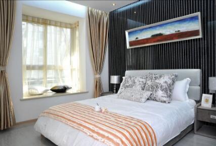 次臥室可以搭配以藍色條紋以及帶有網格的棉布的窗簾,部分的圖案的布料可以做稍微的點綴,如果是女性用的臥室,可以使用藍色的調味來體現她的性格以及外在美。
