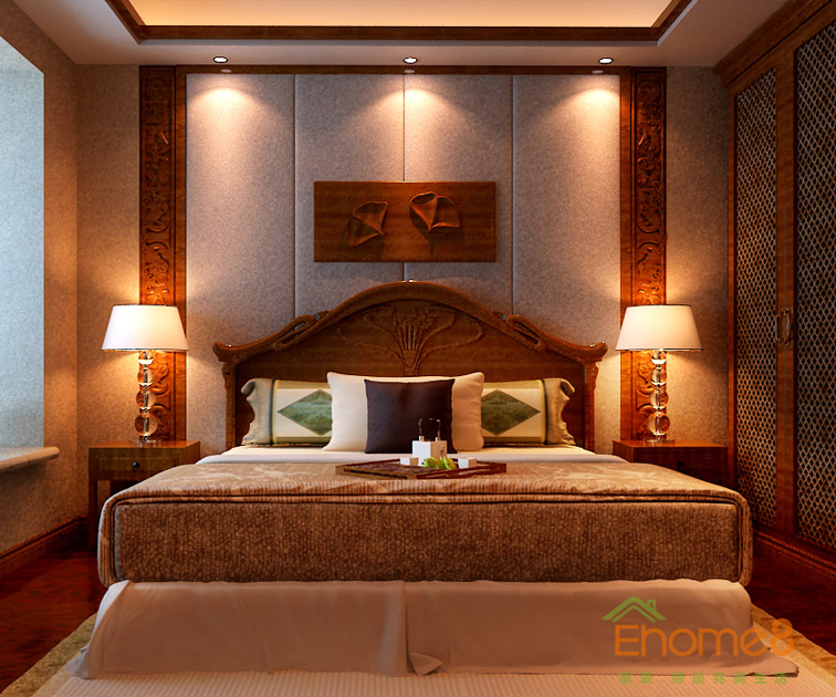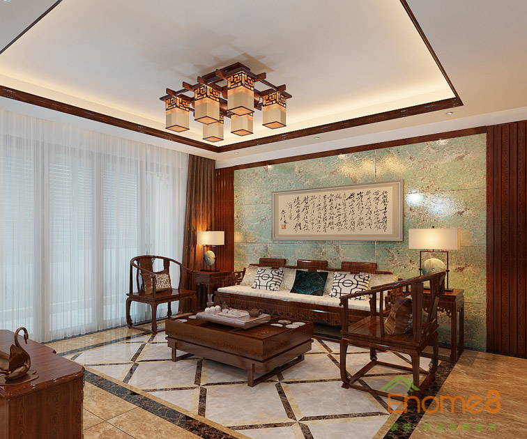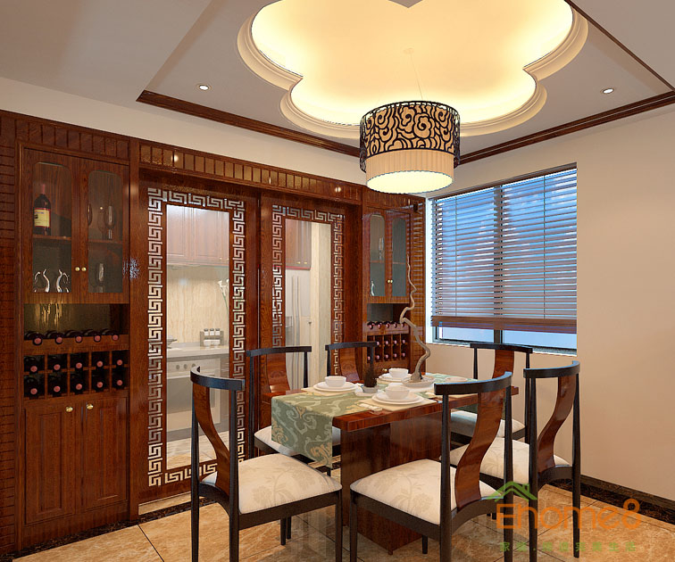 陽光100城市廣場97㎡三房一廳中式原木風格裝修效果圖