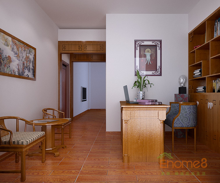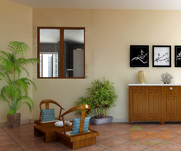 陽光花園102㎡三房一廳中式田園風格裝修效果圖