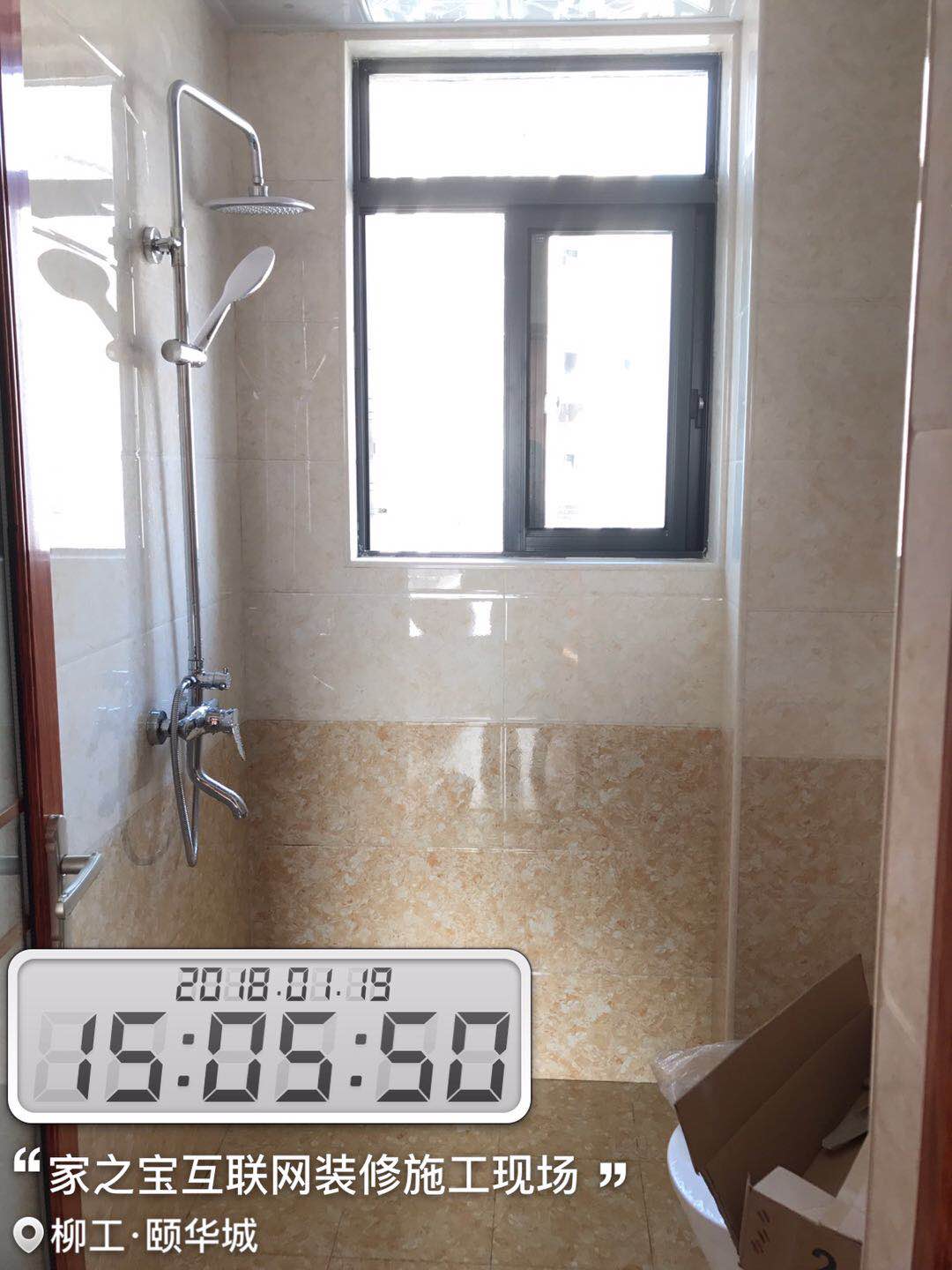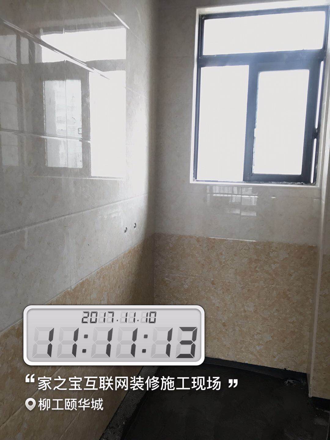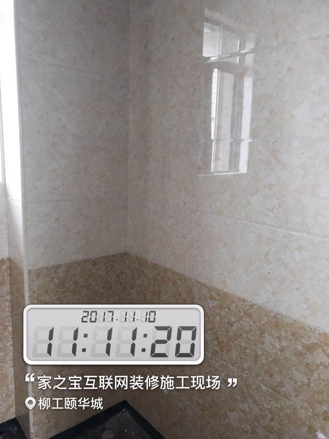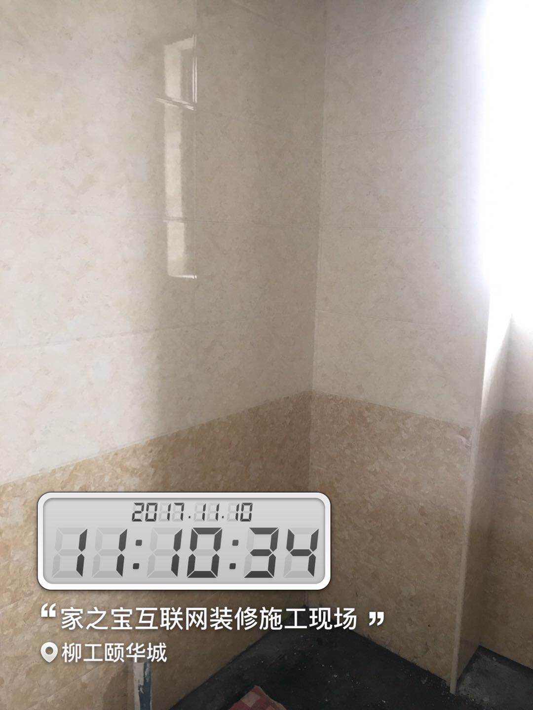 墻磚鋪貼,使用水平儀投射水平線,陽角處采用磨邊45°碰角工藝。