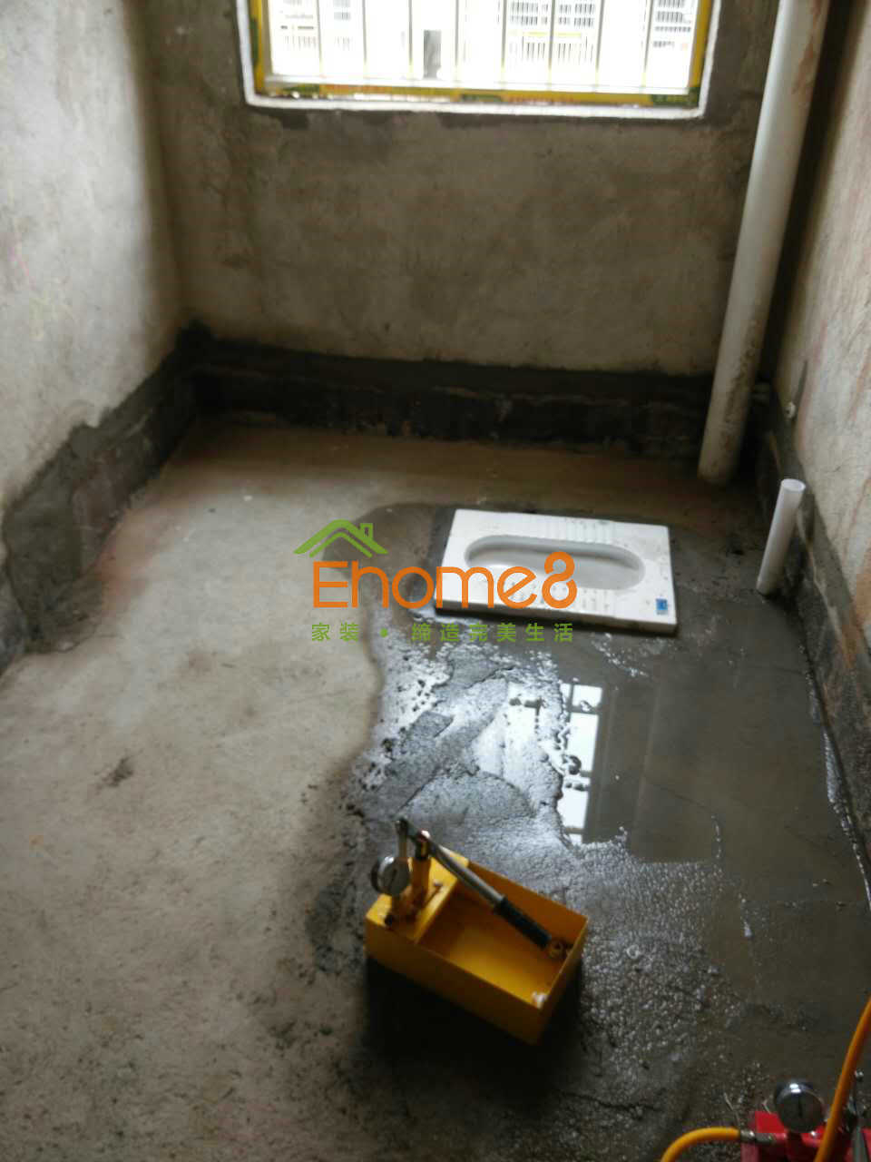 • 衛(wèi)生間門安裝及衛(wèi)生間有色防水的涂刷及閉水試驗,鋪磚完成。