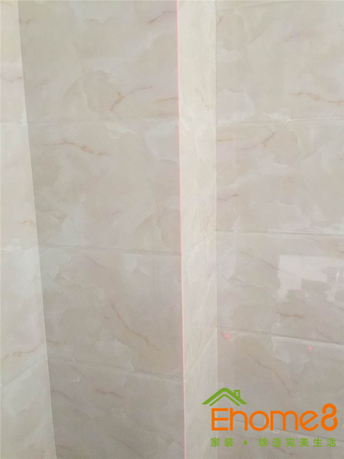 瓦工檢驗,粉紅色的那條線是檢測貼磚的垂直度
