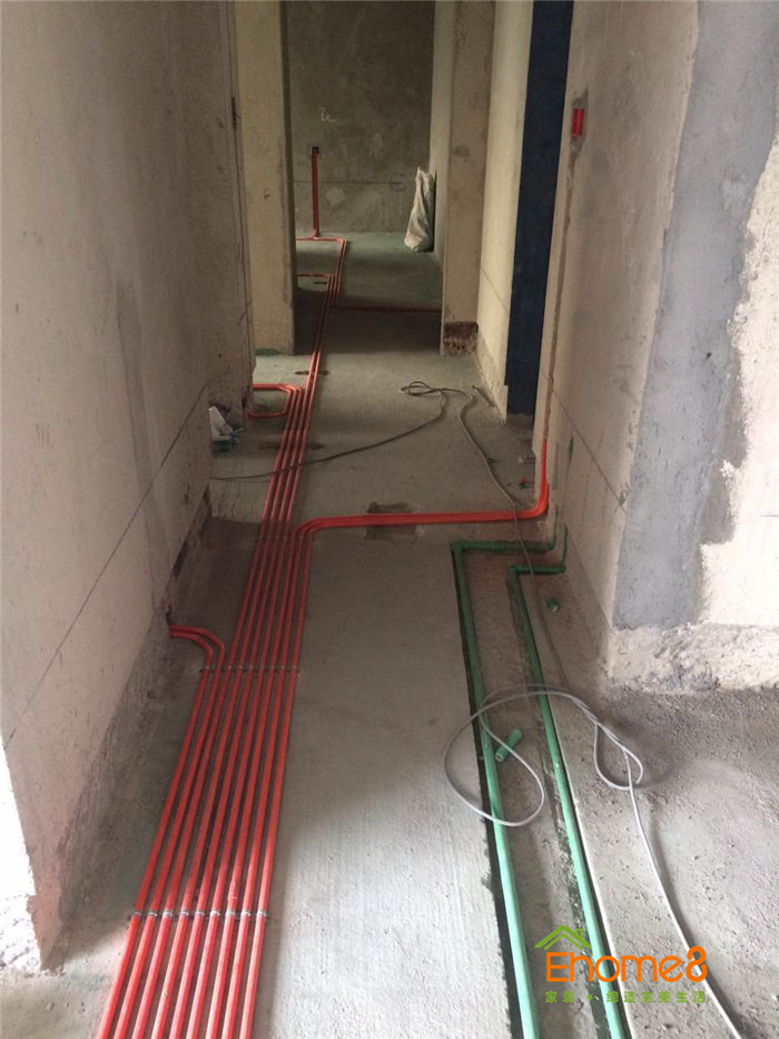 水電施工,單管單槽,按國標工藝走線管水管,采用德系歐標的水電材