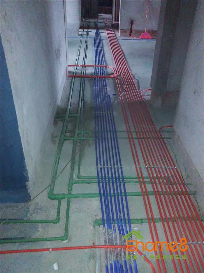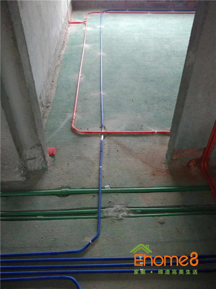 單管單槽,按國標工藝走線管水管,橫平豎直,八字拐角,采用德系歐標的水電材料