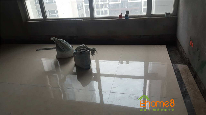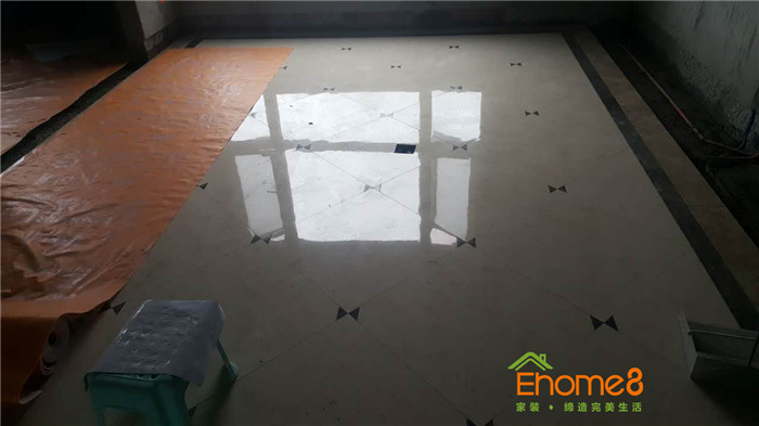 墻磚鋪貼,使用水平儀投射水平線,陽角處采用磨邊45°碰角工藝