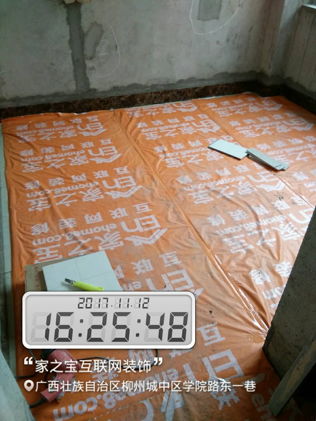 瓦工施工,平整對縫,鋪貼完畢即刻進行成品保護,鋪好地膜。