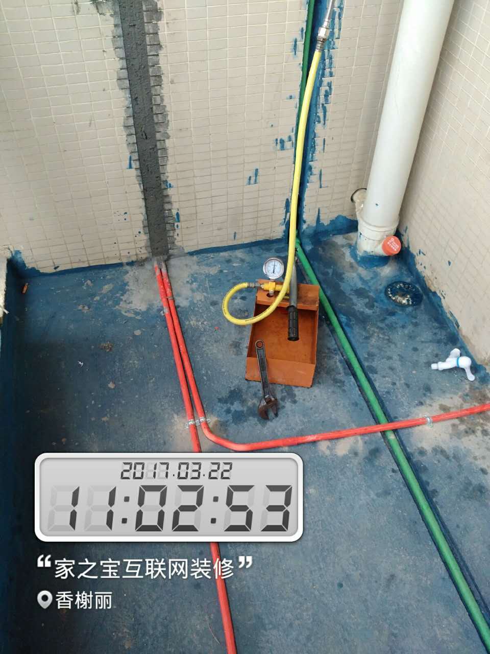 瓷磚材料從3月27日開始進場,過完清明節(jié),4月6日瓦工師傅進場,進行瓦工施工。