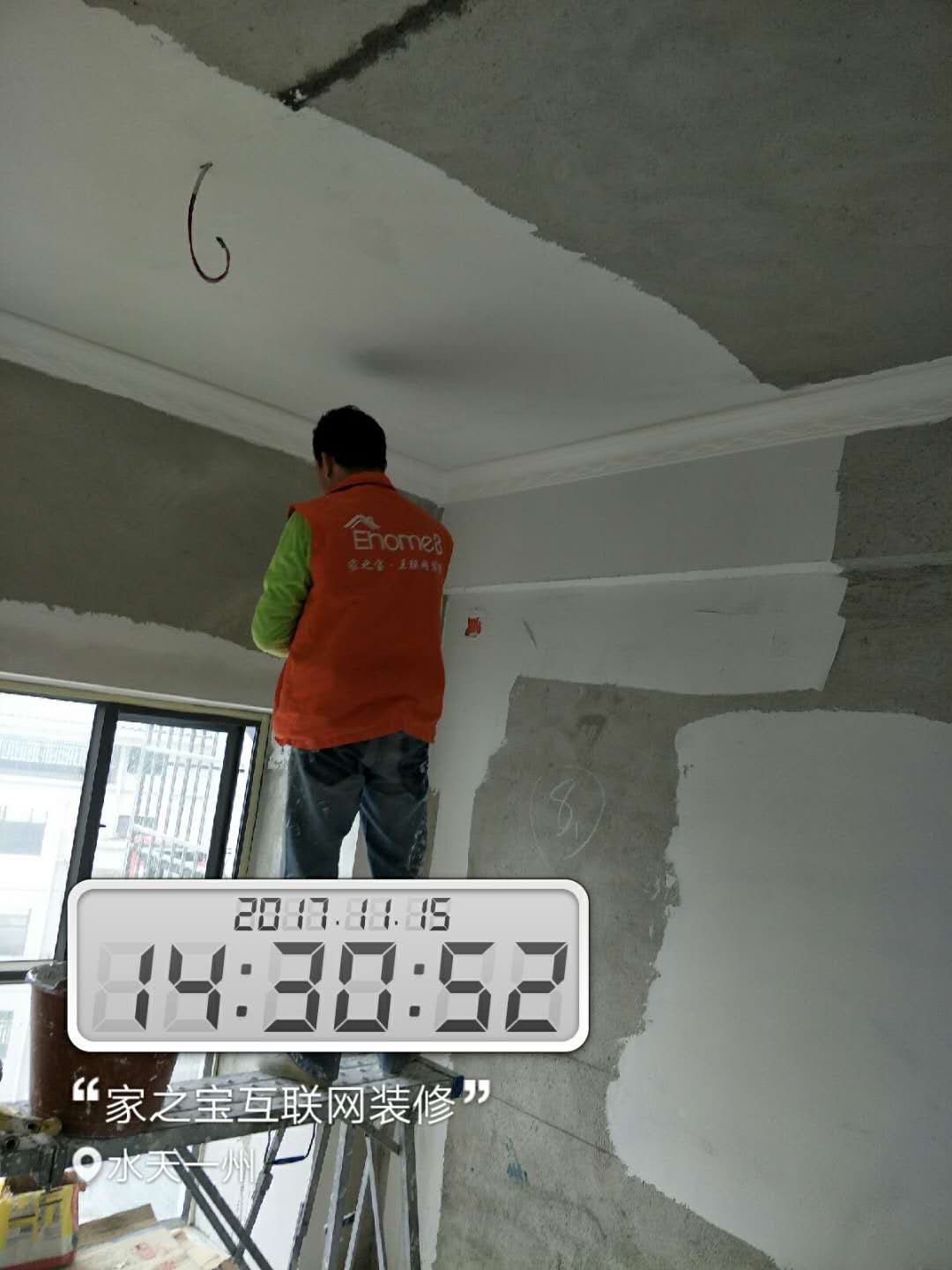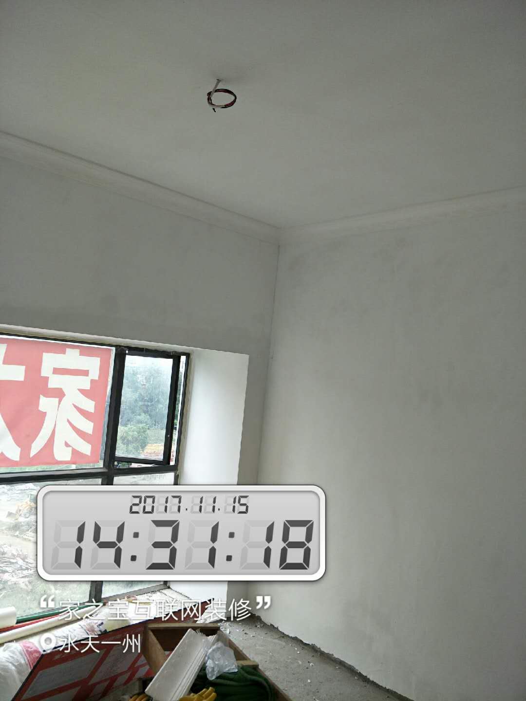 吊頂封板,對螺絲做防銹處理,涂上防銹漆。 刮膩子刮兩遍,打磨一遍,之后刷一遍乳膠底漆,兩遍面漆