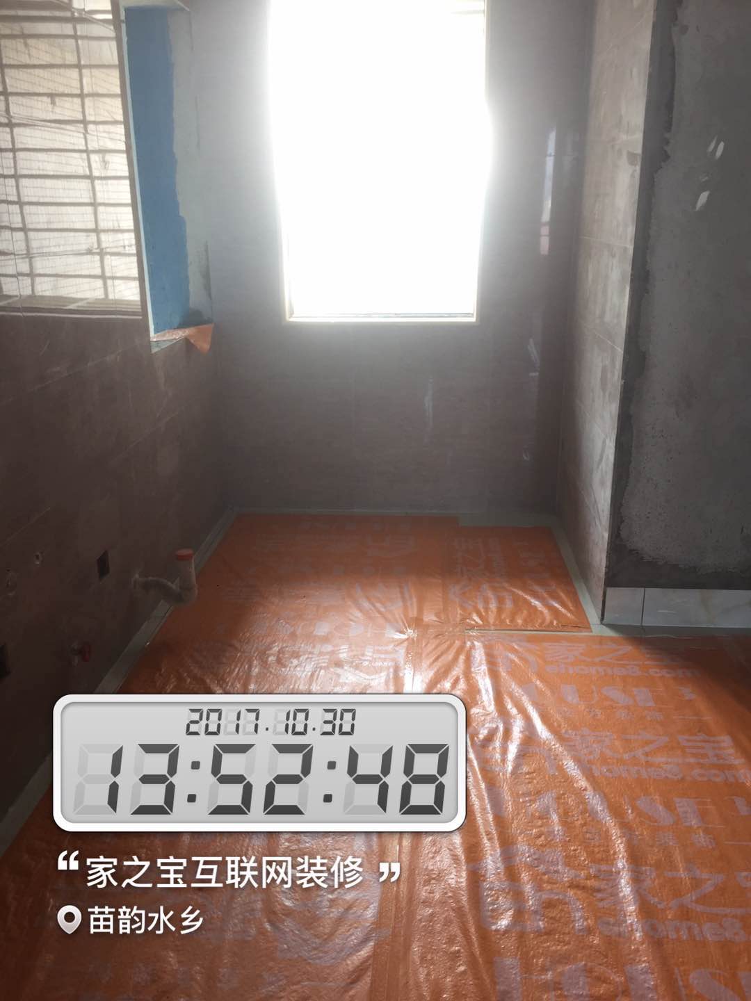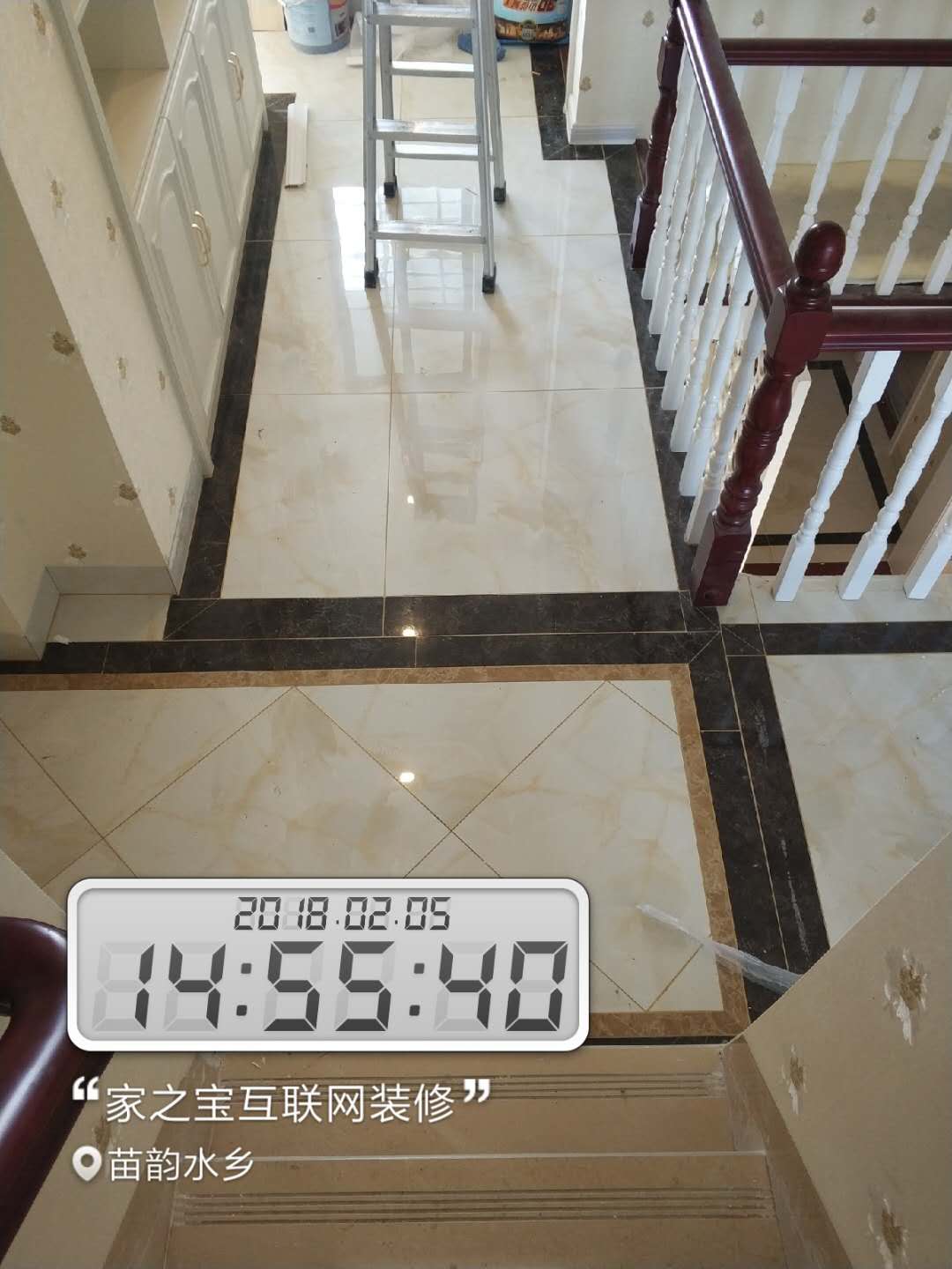 瓦工施工,平整對縫,鋪貼完畢即刻進行成品保護,鋪好地膜。