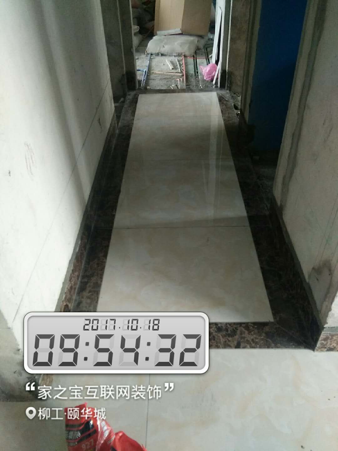 瓦工施工,平整對(duì)縫,鋪貼完畢即刻進(jìn)行成品保護(hù),鋪好地膜。